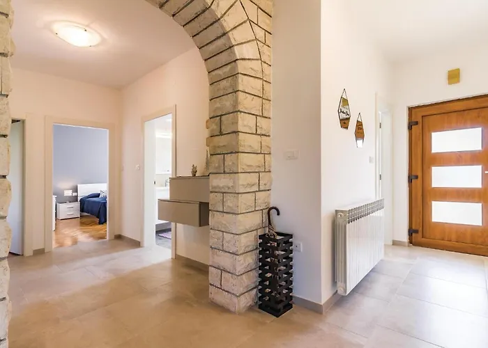 Un angolo cottura attrezzato include una lavastoviglie e un frigo per il vostro comfort quotidiano. L'aeroporto di Pola dista 5 km.